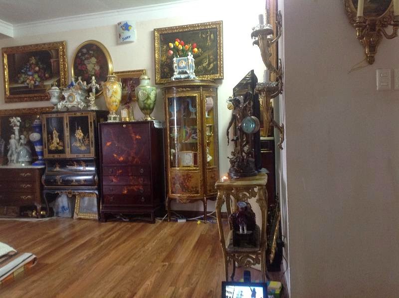 | Cơ man là đồ cổ, tranh cổ quý hiếm chất đống trong (một góc) căn biệt thự, bà Phùng Nhật Hà đã từng thách đố khách dự tiệc về tổng giá trị của các món đồ cổ này, nhưng không ai trả lời được, cuối cùng được bà Hà bật mí lên tới hàng trăm tỷ đồng, “bạn bè thân thiết” được phen tái xanh mặt mũi |