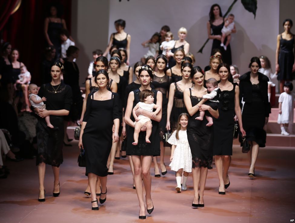 Người mẫu mặc trang phục do hãng Dolce & Gabbana thiết kế cho bộ sưu tập Thu Đông 2015-2016 trong Tuần lễ Thời trang ở Milan, Ý