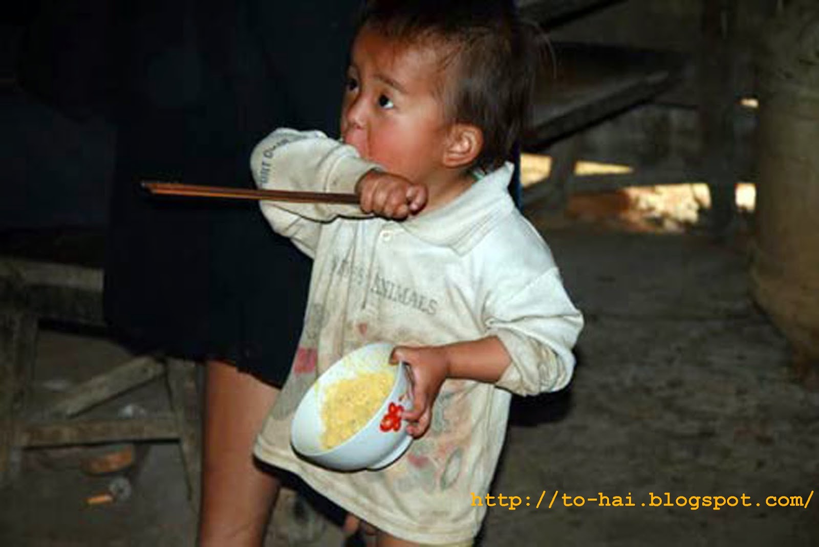 Chiếc bát em bé cầm trên tay chứa món mèn mén, đây là một đặc sản của núi rừng Tây Bắc nhưng khi ăn vào nó thì cứ nghèn nghẹn chẳng khác gì bát “chè khoán” của bà cụ Tứ trong truyện “Vợ Nhặt” của nhà văn Kim Lân
