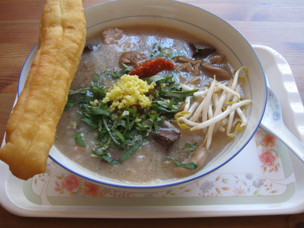 Cháo nấu nhừ, huyết cắt vuông thành từng miếng vừa vặn nhỏ để được nằm gọn trong lòng cái muỗng nhôm. Múc một muỗng vừa có cháo vừa có huyết đưa lên môi thổi cho bớt nóng trước khi cho vào miệng, mà nghe thơm phức làm chảy nước miếng. Còn giò-cháo-quẩy cho vào cháo, dù đã được cắt khoanh, nhưng vẫn giử nguyên cái giòn của nó. Cái “béo” của giò-cháo-quẩy làm cho cái “bùi” của cháo càng thêm đậm đà, và cái “giòn” của giò-cháo-quẩy thì thật “ăn rơ” với cái mềm mềm cứng cứng của huyết.