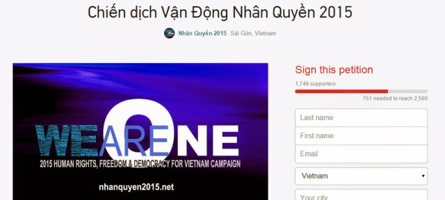 NhanQuyen2015.net – Chiến dịch Vận Động Nhân Quyền 2015 đang hướng đến mục tiêu huy động 100 ngàn chữ ký trên trang mạng Change.org. Đối với một số bạn, hình thức lấy chữ ký online này vẫn còn khá mới mẻ.
