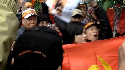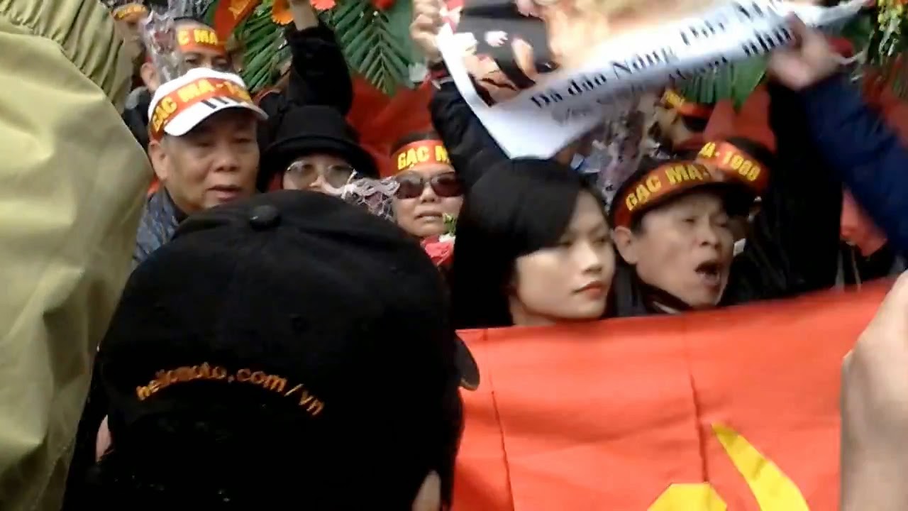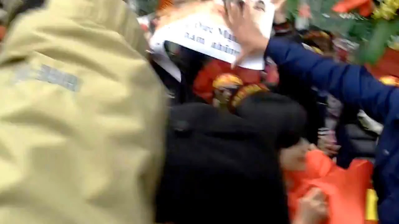 Vài giây tiếp theo, một viên côn an thường phục bất ngờ lao đến ra tay cướp tấm biểu ngữ trên tay anh Trương Văn Dũng. Anh Dũng phản ứng nhanh nhạy tránh được 2 lần, nhưng rồi một tên côn an khác sau cùng vẫn cướp được bức ảnh để dâng công cho đảng của bọn chúng.