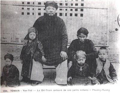 Nhà cách mạng Hoàng Hoa Thám, tức cụ Đề Thám, chụp ảnh bên cáccháu của ông. Courtesy wikipedia.