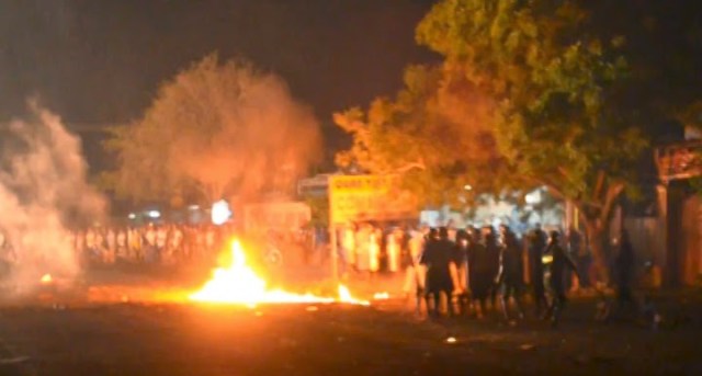 Xung đột giữa người dân và nhà cầm quyền nhanh chóng bùng phát thành bạo lực dữ dội, khiến cả đoạn đường rực lửa như bị thiêu cháy. Video do một số người dân ghi lại tại hiện trường có thể nghe rõ tiếng nổ lựu đạn và những đám cháy bùng do bom xăng