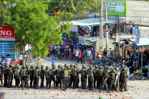 Hành động này như đã đổ thêm dầu vào lửa, người dân phản ứng lại bằng cách dùng gạch đá, bom xăng đánh trả lại lực lượng CA.