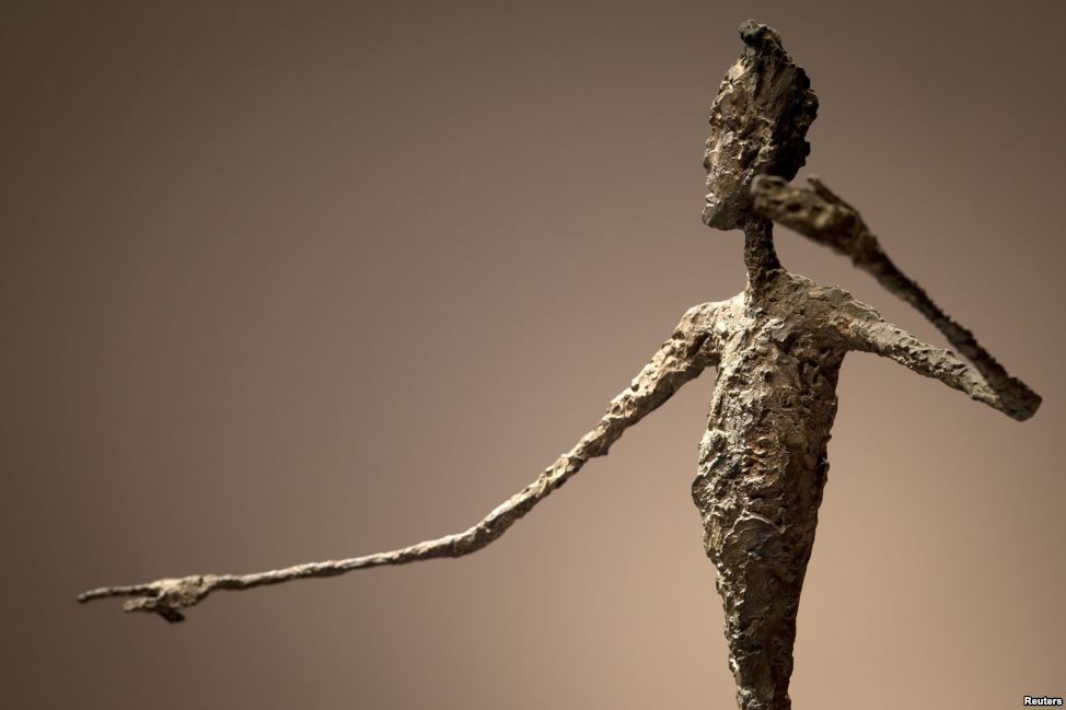 Nửa trên của tác phẩm “L’homme Au Doigt” của nhà điêu khắc Alberto Giacometti tại nhà đấu giá Christie’s ở quận Manhattan của thành phố New York, ngày 11 tháng 5, 2015. Tác phẩm này của Giacometti lập kỷ lục thế giới với mức giá 141,3 triệu đôla