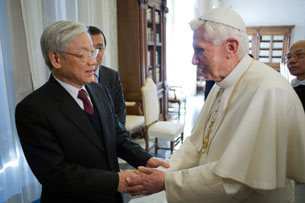 Được bắt tay đức Giáo Hoàng Nguyễn phú Trọng về nước vênh váo khoe với dân chúng, khoe với đám quốc hội “ Mình có sao người ta mới mời chứ”, ý Trọng muốn khoe rằng y là người có giá trị chứ không phải người lú lẫn như “ bọn thù nghịch” thường hay gán cho y cái danh “ Trọng lú”.