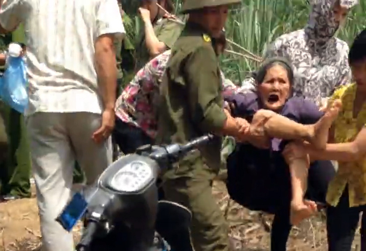 Bạn đọc Danlambao – Sau tiếng quát ‘bốc thẳng lên’ của viên côn an chỉ huy, 4 người trong đoàn cưỡng chế lập tức xông đến nắm chặt tay, chân một cụ bà 90 tuổi rồi khiêng đi như một con vật.