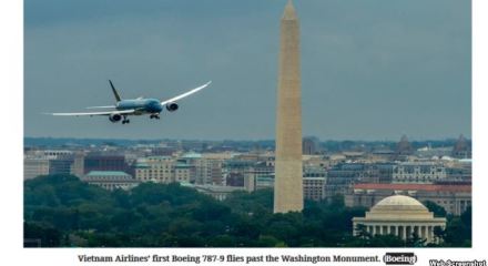Vietnam Airlines biểu diễn chiếc Boeing mới trên không phận thủ đô Hoa Kỳ Ảnh chụp trên trang web của Australianaviation.com.au cho thấy chiếc máy bay Boering 787-9 của hãng Vietnam Airlines bay trên bầu trời thủ đô Washington, ngày 6/7/2015. Vietnam Airlines đã phô trương chiếc máy bay Boeing 787-9 đầu tiên bằng một … Tiếp tục đọc
