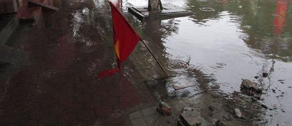 Sau đối tượng buộc cờ vào ghế và đặt ra giữa đường như đã báo cáo buổi sáng, chiều nay có thêm một đối tượng cắm cờ xuống miệng cống thoát nước. Chúng tôi gửi kèm theo biên bản: