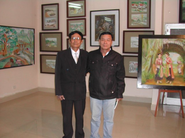 Phạm Đức Nhì và nhà thơ Trịnh anh Đạt (đeo kính) tại triển lãm “MỸ THUẬT MÙA XUÂN”