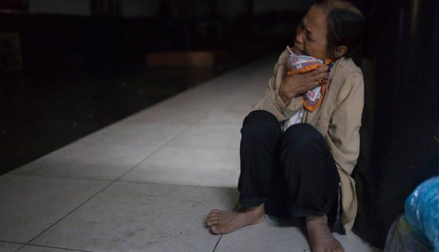| Chị Mai, mẹ cháu Dư bên ngoài nhà xác. Photo by Chau Doan |