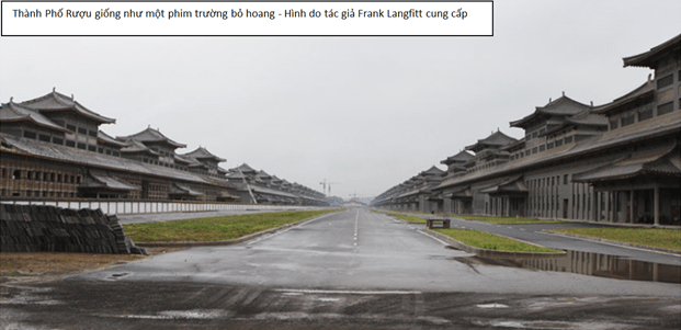 Một dự án khác sẽ không có triển vọng sáng sủa như trên trong tương lai gần là dự án xây thành phố có biệt danh là “Liquor City” hay còn gọi là “thành phố Rượu.” Đây là một khu kiến trúc theo lối Trung Hoa cổ truyền lớn bằng diện tích của cả mấy sân chơi banh cộng lại, có tường thành đang xây dang dở bao bọc xung quanh theo lối kiến trúc Vạn Lý Trường Thành.