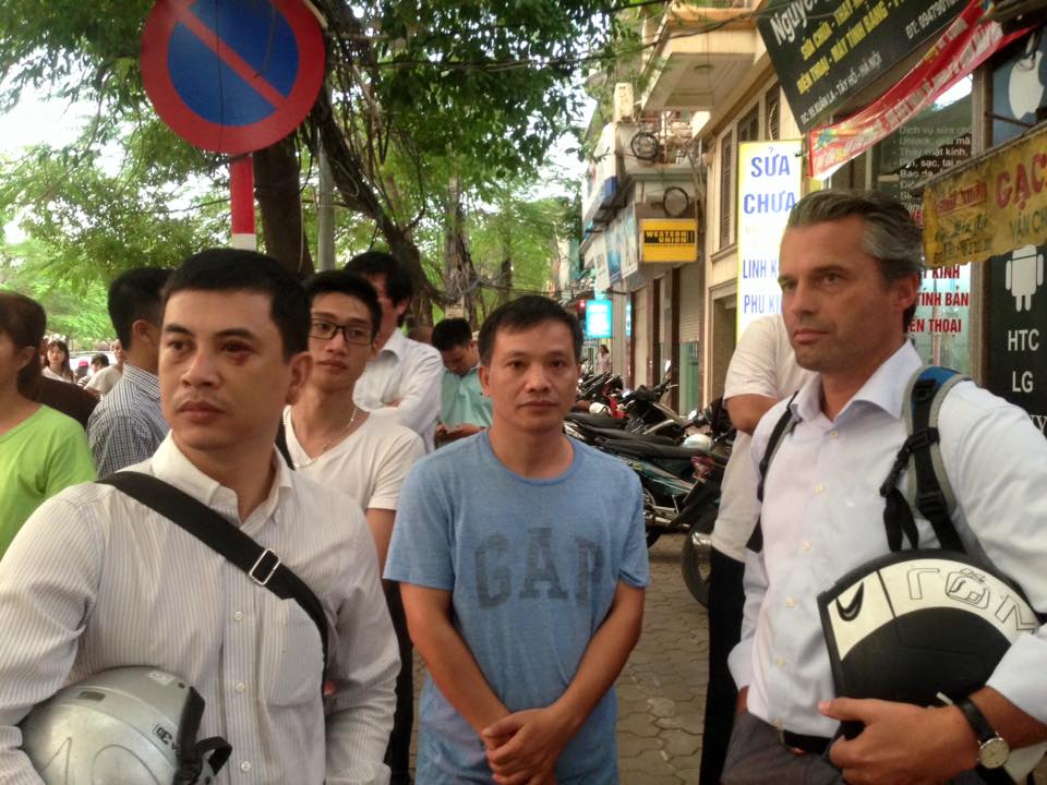 Trong đoàn người đứng trước trụ sở CA phường Xuân La còn có ông Felix Schwarz – tham tán chính trị đại sứ quán Đức tại Hà Nội.