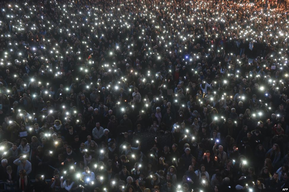 Mọi người tụ tập tại Quảng trường Capitol ở thành phố Toulouse, miền nam nước Pháp, để tưởng niệm những nạn nhân trong những vụ tấn công ở Paris
