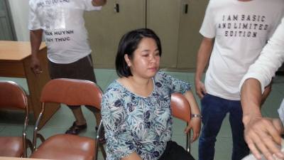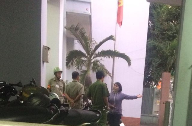 | Đỗ Thị Minh Hạnh tại trụ sở CA trước khi bị bắt mất tích. Ảnh: Facebook Nguyễn Hoàng Vi. |