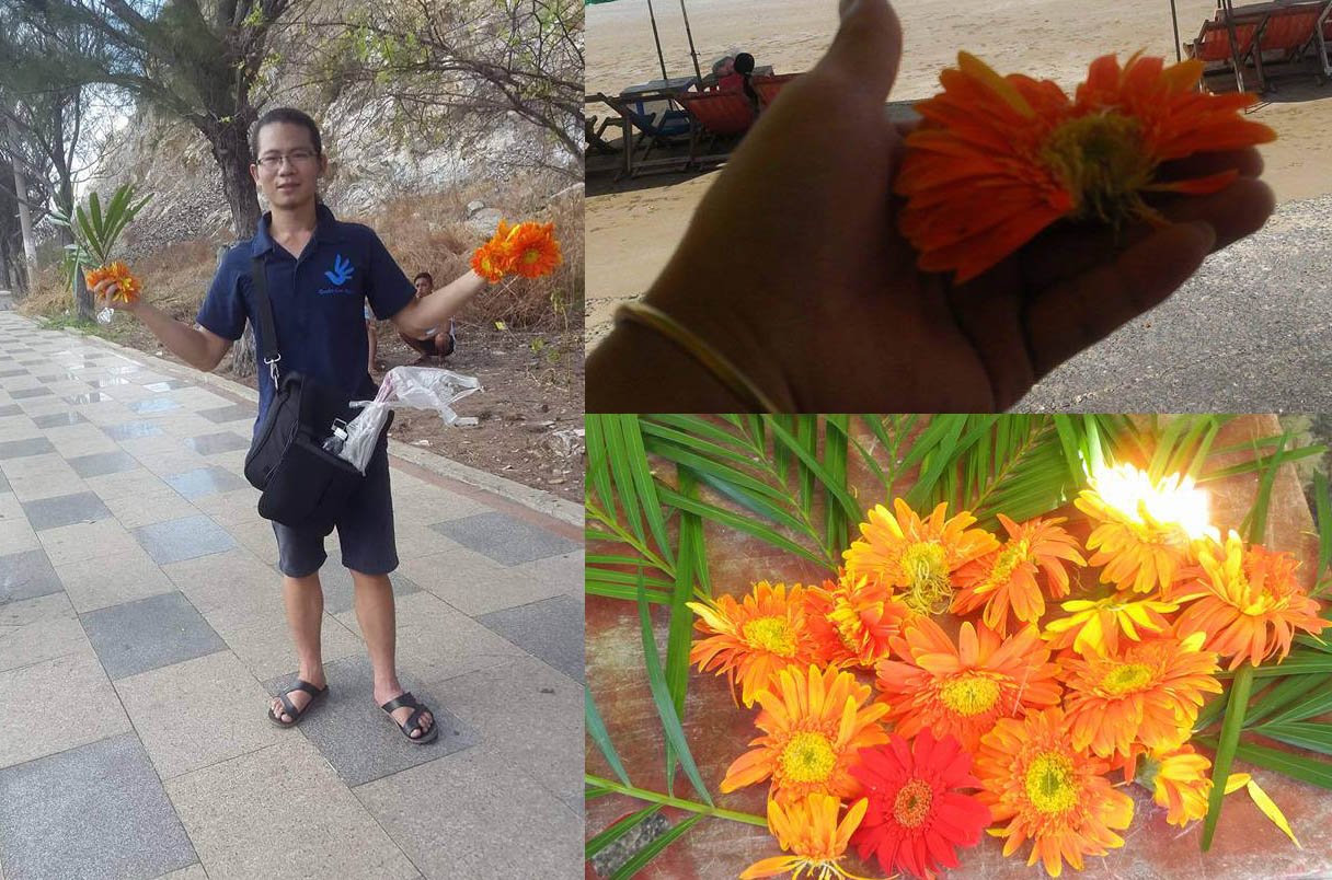 Tại bãi biển thì “quần chúng tự phát” đã lao vào cướp 2 vòng hoa tưởng niệm rồi bỏ chạy.