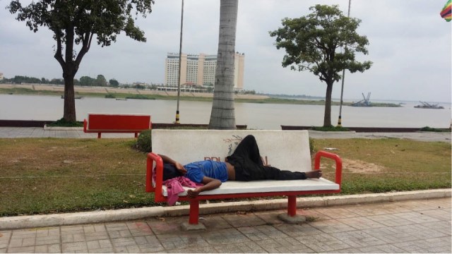 Thảo nào mà ở Phnom Penh đã có kẻ bỏ lại “những mái chèo lơi” cho sông nước, chỉ còn khoác mỗi “manh áo tả tơi” thất thểu bước lên bờ, rồi nằm dài giữa công viên phố thị.