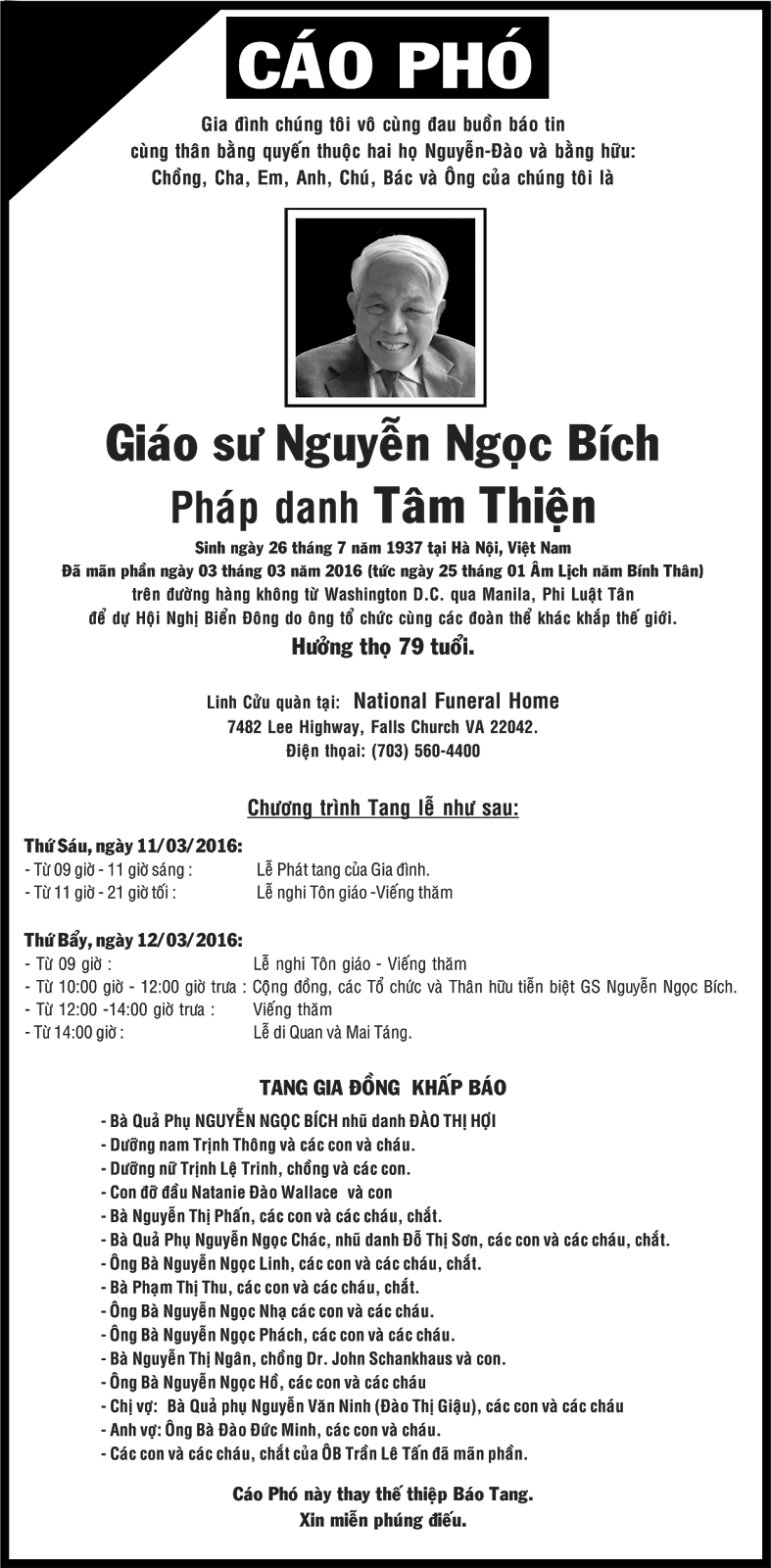 Chương Trình Tang Lễ Giáo Sư Nguyễn Ngọc Bích