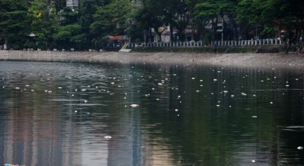 Cá chết nổi trắng mặt hồ ở Hà Nội.
