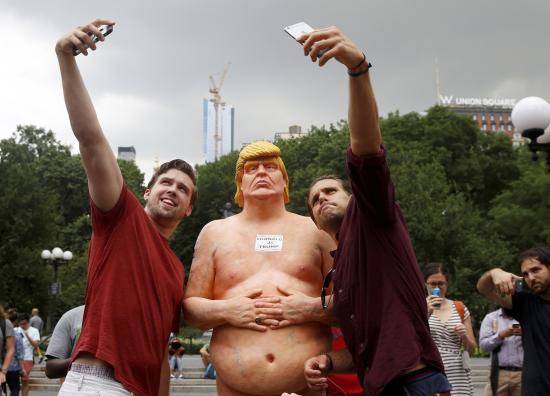 VietPress USA (1982016): Vào sáng thứ Năm 1882016, dân chúng Hoa Kỳ thuộc 5 thành phố lớn gồm New York, San Francisco, Los Angeles, Seattle và Cleveland đã vô cùng thích thú cười vui khi mọi người vừa thức dậy ra phố đi làm đã thấy những bức tượng trần truồng tạc hình của Ứng cử viên đảng Cộng Hòa Donald Trump có vóc dáng lơn như người thật đã được ai đó trưng bày ngoài phố tại nơi đông đúc nhất.
