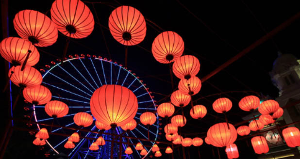 Và những lồng đèn đỏ, tượng trưng cho trang trí đặc thù của Trung Cộng cũng hiện diện khắp nơi, không những ở Bình Dương mà ở khắp nơi nào có sự hiện diện của Hán tộc Trung Cộng.