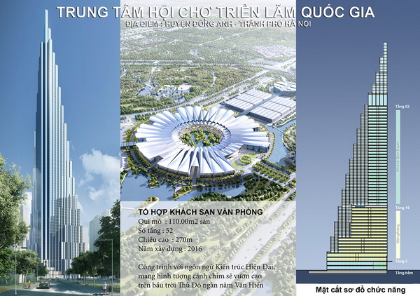 | Tổ hợp khách sạn văn phòng 5 sao cao 52 tầng sẽ được xây trong khuôn viên trung tâm Hội chợ. |