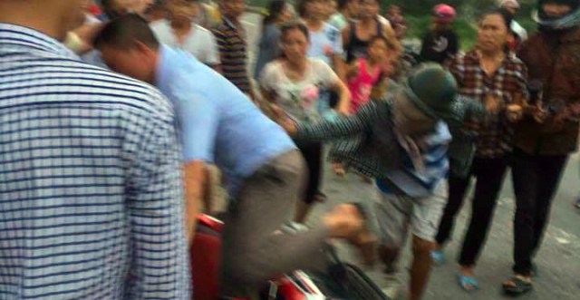 | Một viên CA thường phục bị người dân bắt sống tại hiện trường |