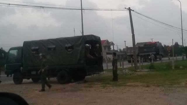 Sau khi người dân phát hiện, lực lượng cảnh sát cơ động, côn an và mật vụ đã dùng đá ném vào phía người dân, khiến chị Mai Thị Hương và một giáo dân Đông Yên bị thương ở sóng mũi và dập chân.