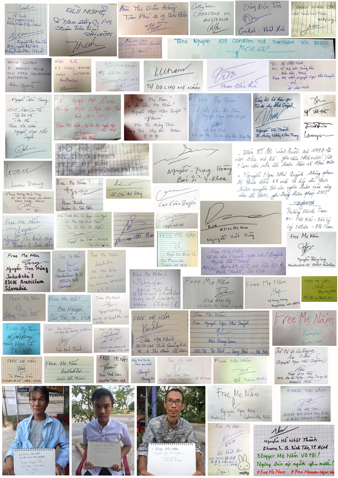 – Bản chụp chữ ký (với các nội dung trên và ghi chú TỰ DO CHO MẸ NẤM);