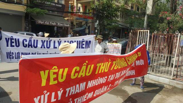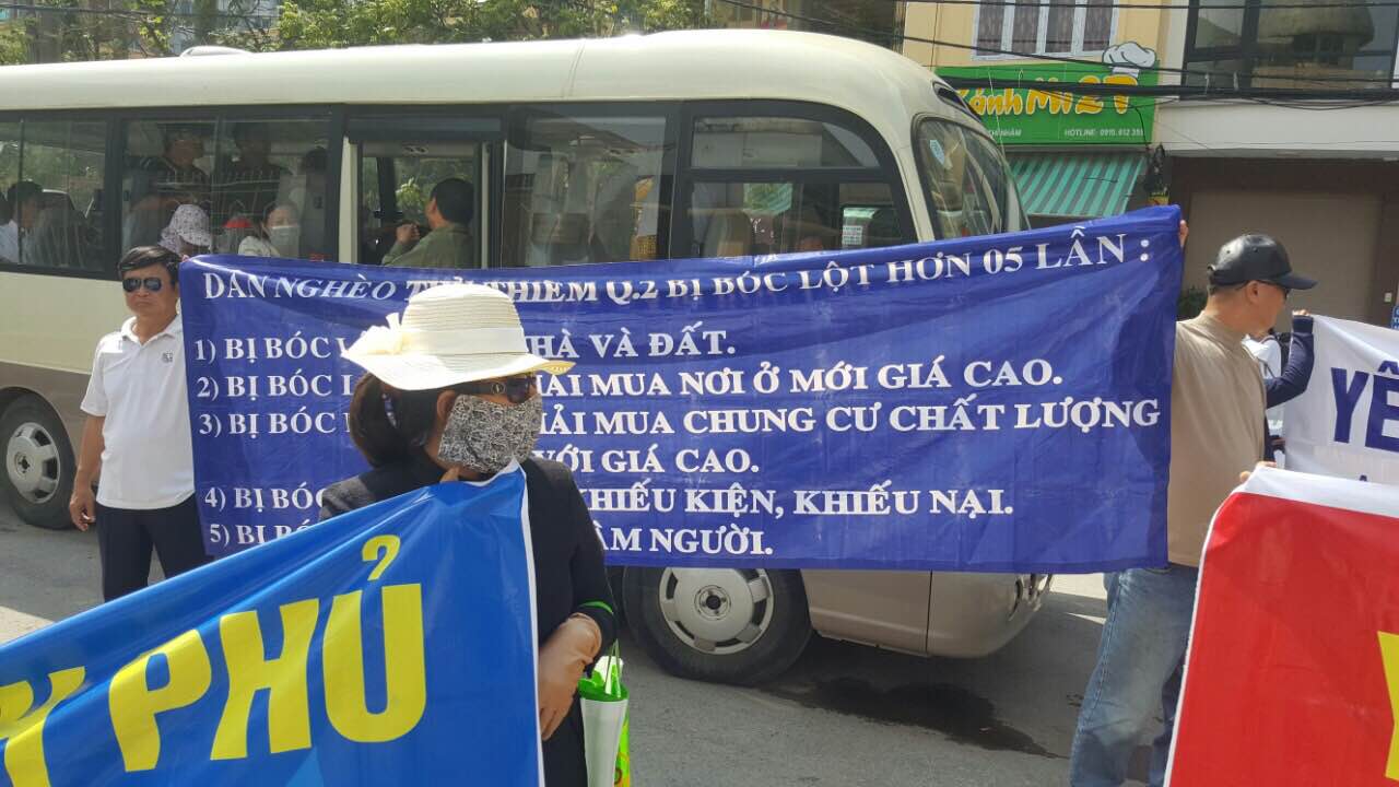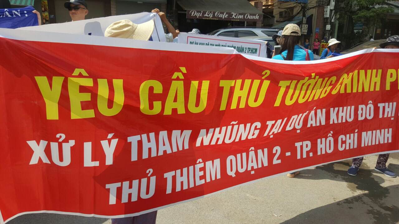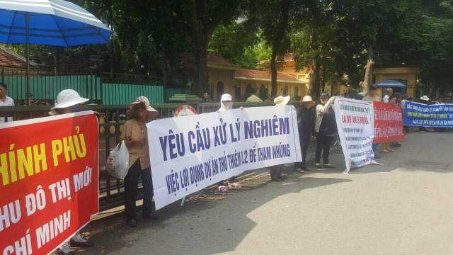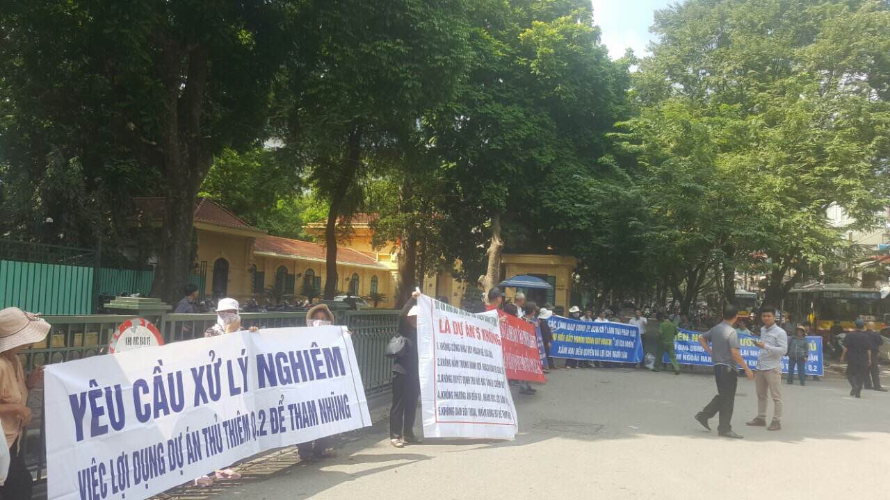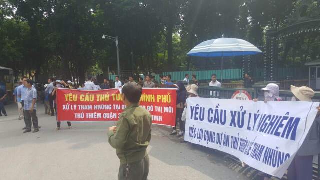 Dân oan Thủ Thiêm quận 2 đang tập trung biểu tình tại Hà Nội. Yêu cầu xử lý nghiêm việc lợi dụng dự án Thủ Thiêm để tham nhũng. Không phải là bóc lột mà là ăn cướp!