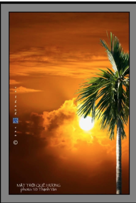 Tác phẩm “Mặt trời quê hương” hoặc “Mây Nước Sông Trà.” Về mặt bố cục, rất thăng bằng, cân đối: có tiền cảnh – có chủ đề – có hậu cảnh… – Ánh sáng , màu sắc hòa phối thật tinh tế. Cả không gian rạng rỡ vô biên với vầng mặt trời rực sáng ấy, dường như đã bị chiếm lĩnh thu phục ở hình ảnh cây cau xanh mướt, thanh thoát mà mạnh mẽ kia! Ta lại bắt gặp phong cách sáng tác rất riêng, rất đặc thù của VTV: Vẫn lãng mạn bay bổng mà uy nghi đĩnh đạc lạ thường.