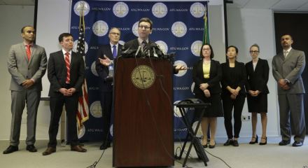 Thẩm phán liên bang ra phán quyết chặn đứng sắc lệnh cấm nhập cảnh của TT Trump 04.02.2017 Tổng Chưởng lý bang Washington Bob Ferguson (giữa) trao đổi với báo giới, ngày 30 tháng 02 năm 2017. Chia sẻ Print Một thẩm phán liên bang tại bang Washington ở vùng Tây-Bắc Hoa Kỳ đã tạm … Tiếp tục đọc
