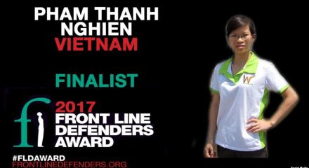 Phạm Thanh Nghiên vào chung kết giải ‘Những Người Bảo vệ Nhân quyền bị Đàn áp’ 2017