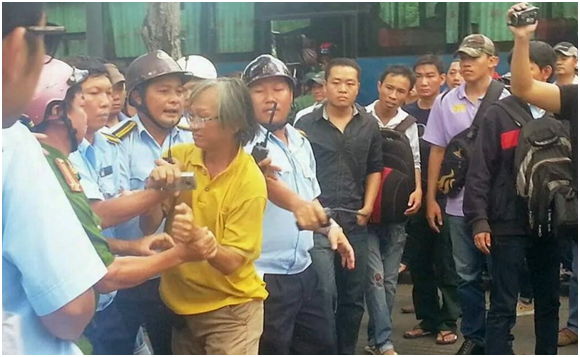 – Bác áo vàng bị bắt ấy rất can đảm. Bác tuy ốm yếu như vậy nhưng bác thường xông vào cứu các đồng đội bị bắt. Mỗi lần đi biểu tình thấy bác ấy mình rất an tâm.