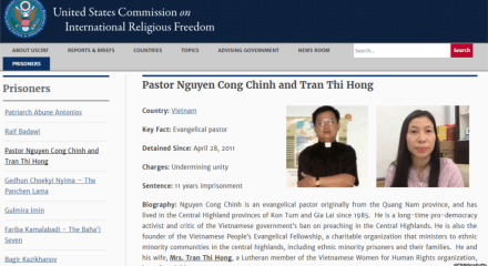 USCIRF vận động đưa Việt Nam trở lại CPC: Phản ứng của chức sắc tôn giáo 06/04/2017 USCIRF giới thiệu hồ sơ Tù nhân Lương tâm Mục sư Nguyễn Công Chính và bà Trần Thị Hồng. Chia sẻ Print Xem bình luận Ủy ban Tự do Tôn giáo Quốc tế của Hoa Kỳ (USCIRF) hôm … Tiếp tục đọc
