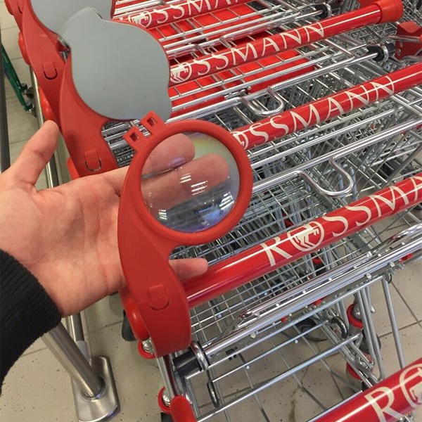 Chỉ cần thêm một chiếc kính lúp ở góc xe đẩy, những người lớn tuổi sẽ có thể dễ dàng đọc thông tin trên sản phẩm hơn rất nhiều.