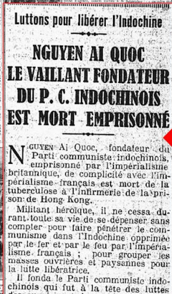 Báo l’Humanité: Nguyễn Ái Quốc đã chết trong tù tại Hồng Kông năm 1932!