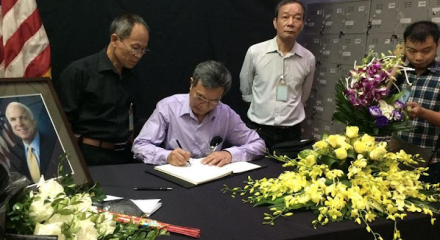 Đi viếng Thượng nghị sỹ John McCain Nguyễn Xuân Nghĩa (Danlambao) – Lo xa vừa phải thì tốt, lo xa quá xa thì mệt. Nghĩa tôi rời giường từ 4 h sáng, rời Hải Phòng từ 5 h nên có mặt tại 170 (tòa nhà Vườn Hồng) phố Ngọc Khánh-Hà Nội vào khoảng 8h kém … Tiếp tục đọc
