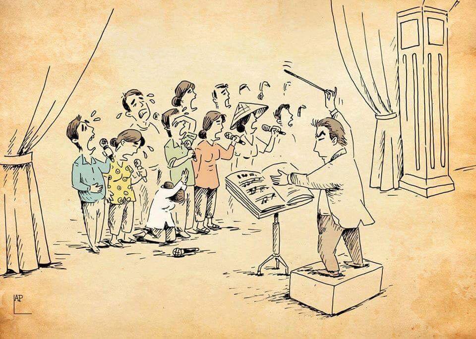 Thói kiêu ngạo CS tưởng đó chỉ là một thói quen của họ, nhưng không phải. Đó là cả một chiến lược. Bước 1, tước bỏ quyền tự do nhân dân. Bước 2, cắt lưỡi nhân dân. Và bước cuối cùng là nhét chữ vào mồm nhân dân để thực hiện dã tâm.”