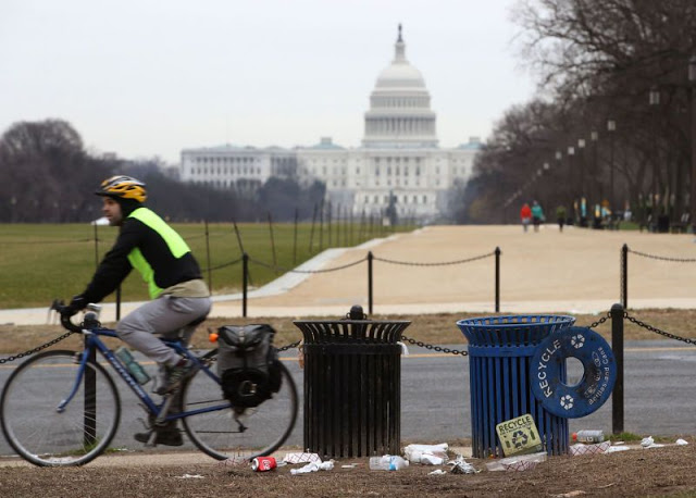| Rác vương vãi trong khuôn viên National Mall hôm 2 Tháng Giêng, 2019, tại Washington, DC, khi chính phủ Hoa Kỳ đóng cửa một phần đã 12 ngày. (Hình: Mark Wilson/Getty Images) |