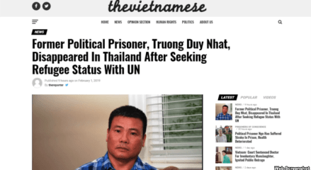 Blogger Trương Duy Nhất bị bắt ở Thái Lan sau khi xin tị nạn chính trị? 01/02/2019 Chia sẻ 1037 Xem bình luận Hôm 1/2, trang The Vietnamese loan tin rằng cựu tù nhân chính trị Trương Duy Nhất bị mất tích ở Thái Lan sau khi đến văn phòng Cao ủy Tị nạn Liên … Tiếp tục đọc