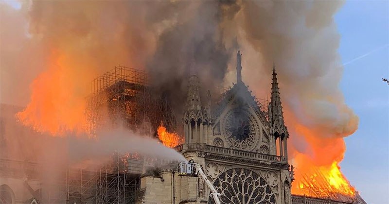 Thế mà chỉ trong vòng có vài tháng, hai biểu tượng vĩ đại của nước Pháp đã phải hứng chịu những thảm nạn kinh khủng. Khải Hoàn Môn hồi cuối năm 2018 bị đám Áo vàng đập phá một cách vô cùng thô bạo và cực kỳ dã man. Nhà thờ Notre-Dame, hôm chiều 15/03/2019, bị ngọn lửa tàn bạo thiêu mất một phần quan trọng với ngọn tháp mũi tên. Cho đến nay hơn 850 năm, nhà thờ Đức Bà chỉ bị hỏa hoạn năm 1644 ở sườn nhưng nhẹ, và một trái bom của quân đội Đức hồi tháng 10/1914 trong Đệ I Thế chiến, làm thiệt mạng bốn tín đồ nhưng không thiệt hại đến Đức Bà.