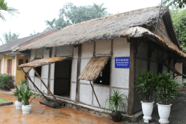 Hai cụ Huỳnh Thúc Kháng và Ngạc Am Võ Liêm Sơn đã mua khoảng vườn và dựng mái nhà tranh này với số tiền 2.000 đồng Đông Dương do đồng bào quyên góp khắp ba kỳ cùng với số tiền quyên góp của kiều bào ở Pháp gửi về. Cái nhà ấy dựng theo kiểu cụ Phan vẽ ra, gồm hai gian rộng ở hai đầu, gian giữa hẹp hơn vừa đủ chỗ cho một cái giường, cái bàn và cái tủ làm buồng riêng của cụ, có song mở ra bốn phía, tỏ ý rằng chủ nhân là một người sống quang minh chính đại, ai cũng có thể thấy từ gan ruột bên trong, chính kiểu nhà ấy là tượng trưng của ba kỳ Bắc-Trung-Nam. (5) Cho đến ngày cụ Phan qua đời, căn nhà ấy vẫn không có gì thay đổi, đúng như Nguyễn Thiệu Lâu nhớ lại: “Một cái cổng tre con, ở giữa một hàng rào cây xanh, một cái sân đất, ở giữa có trồng mấy cây cảnh lơ thơ, rồi đến một cái nhà tranh ba gian hai chái.” (6)