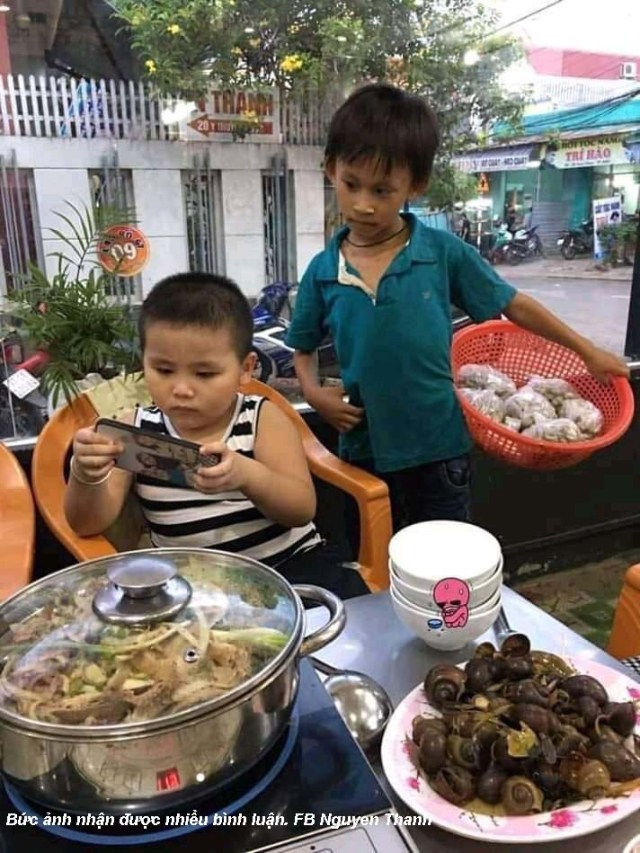 Trên mặt bàn đầy gà, ốc… bon chen