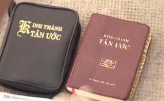Hai cuốn Kinh Thánh Tân ước được tìm thấy trong chiếc xe của các nghi phạm. (Hình ảnh từ clip/nld.com.vn)