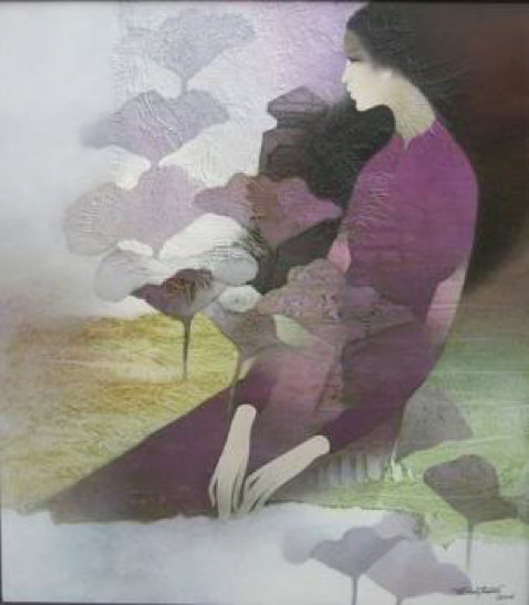 Một hôm tôi đi dạy học về thấy nàng đứng trước tờ tranh tôi vẽ nàng hôm nọ, tôi vào mà nàng không biết. Tôi nói: