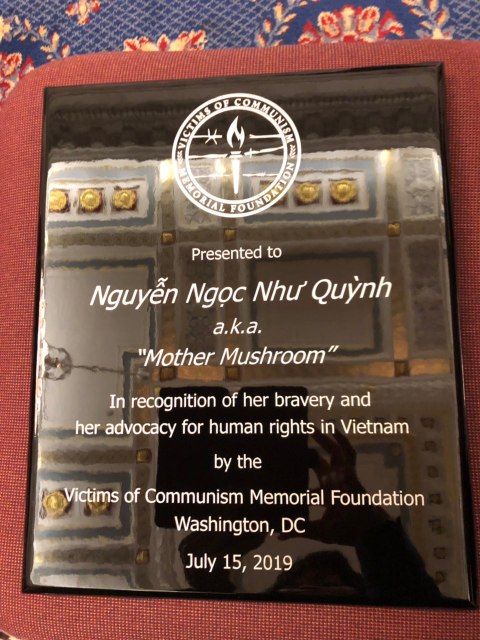 Không có từ ngữ nào có thể diễn tả được lòng biết ơn của tôi đối với những lời tốt đẹp và sự khích lệ của mọi người đã dành cho tôi. Giải thưởng uy tín này có vai trò như một lời nhắc nhở về các vi phạm nhân quyền đang tiếp diễn ở Việt Nam. Và với vai trò là một nhà hoạt động, công việc của tôi vẫn chưa thể dừng lại ngay cả khi tôi đang sống lưu vong.