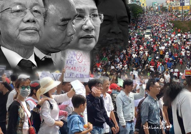 Biểu tình chống Dự thảo Luật Đặc khu – nhằm chính thức hoá bằng luật âm mưu giao 3 địa bàn chiến lược Bắc Vân Phong, Vân Đồn, Phú Quốc cho Tàu trong 99 năm – xảy ra trong lúc Nguyễn Phú Trọng gia tăng đốt lò và mọi người nghĩ rằng phe cánh Nguyễn Tấn Dũng đã ở vào tình trạng bị Nguyễn Phú Trọng truy cùng diệt tận. Sau cuộc biểu tình, hàng trăm công nhân bị ruồng bắt, xét xử và bỏ tù.
