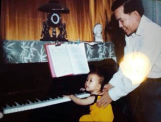 Tôi đã được hưởng rất nhiều điều từ ba mẹ. Tôi được đặt tay lên các phím trắng đen của chiếc dương cầm của mẹ từ lúc mới chín mười tháng tuổi. Lúc đó tôi chỉ là một em bé ốm yếu, ngồi chưa vững trên chiếc ghế piano nên ba mẹ sợ tôi té, cứ phải lấy hai tay đỡ hai bên cho tôi. Hai bàn tay nhỏ bé lúc ấy chỉ đập đập lên phím (vì ngón còn rất yếu) như một thứ đồ chơi to đùng mà sao lại phát ra thứ âm thanh làm tôi thích thú! Cứ mỗi ngày như thế, tôi làm quen dần với việc ngồi vào đàn cùng với sự giúp đỡ của ba mẹ.